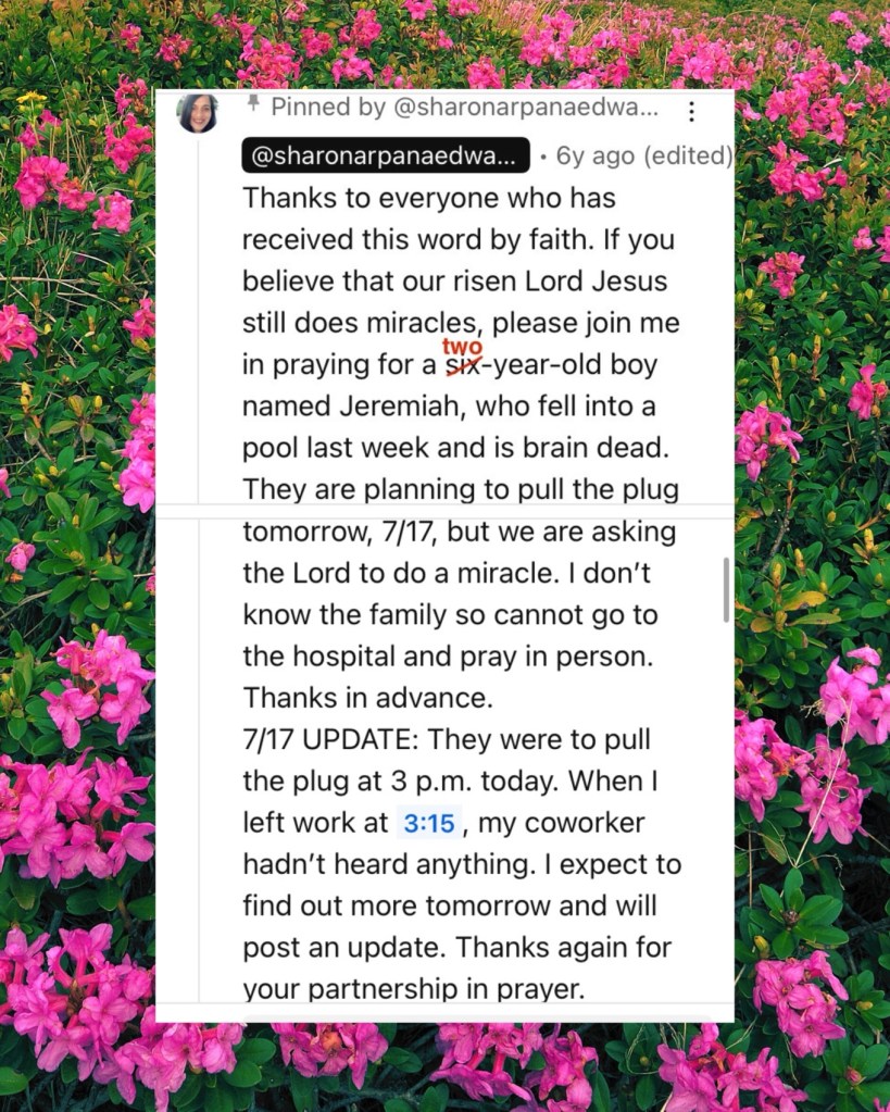 On the evening July 16, 2019, I was finishing up at work when the Holy Spirit prompted me to check my email. That’s how I learnt that two-year-old Jeremiah, a coworker’s friend’s son, had fallen into a pool and been declared brain dead. My coworker was requesting prayer, so I jumped in.