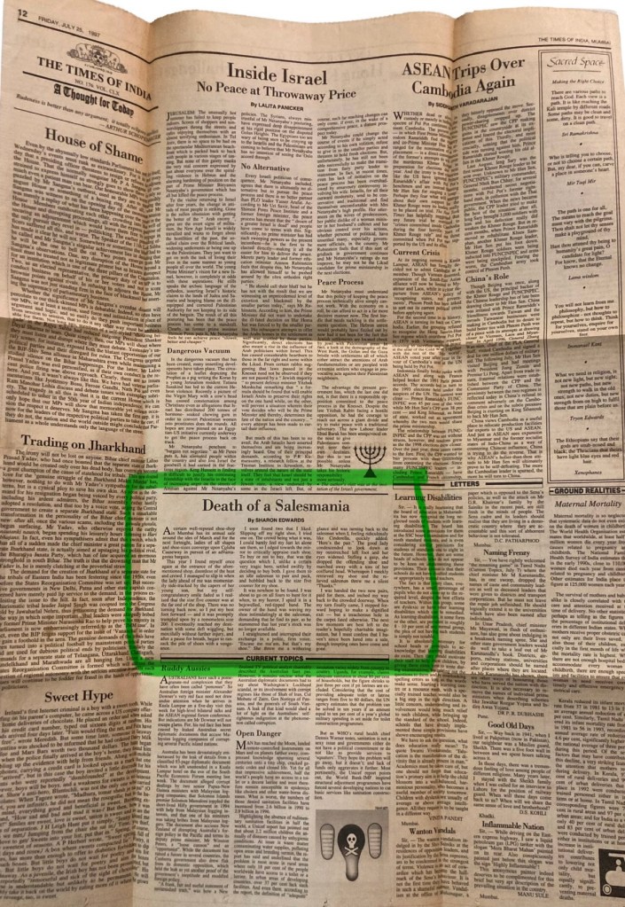 The first time I can recall parodying Shakespeare’s most famous line in print is in a piece I submitted to the Times of India in 1997. The “middle,” as such pieces were called when I was writing them, was titled “Death of a Salesmania.”