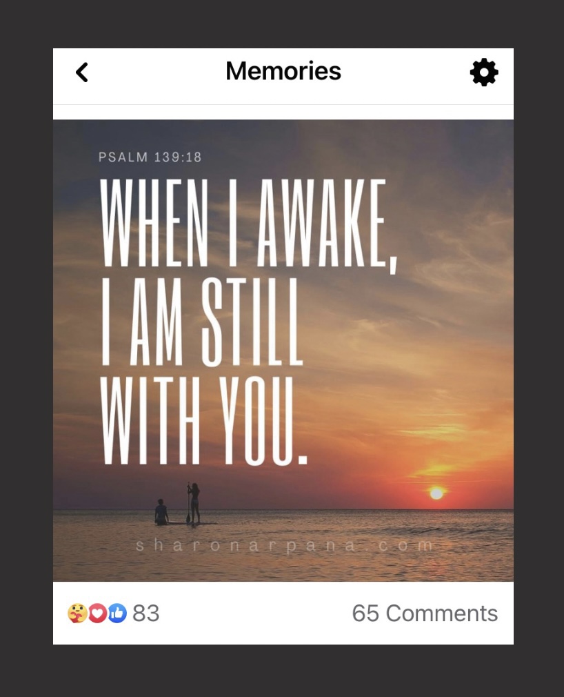 I just realized something about the verse the Holy Spirit had given me a few hours after your funeral. I didn’t know why I was being prompted to use Psalm 139:18 for my most heartbreaking Facebook announcement, but it resonated somewhere deep inside. Today, on this first anniversary of yours, I’ve finally made the connection.